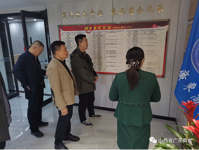 汾酒销售公司李总和吴经理在我会会长陪同下参观商会新址