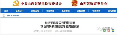 日前,山西省纪委监委对3起粮食购销领域违纪违法典型案例进行公开通报,具体如下: