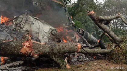综合印度亚洲国际新闻(ANI)、印度报业托拉斯(PTI)等印媒12月8日消息,印度空军Mi-17V5直升机在泰米尔纳德邦(Tamil Nadu)坠毁,机上共有14人,包括现任印度国防参谋长比平·拉瓦特(CDS Gen Bipin Rawat)、他的妻子玛杜丽卡·拉瓦特(Madhulika Rawat)、国防助理,以及印度空军飞行员等。