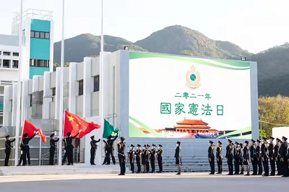 香港海关学院在国家宪法日举行升旗礼 照片中央位置为何珮珊 图源:香港海关