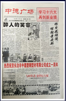 《中德导刊》于2002年11月18日更名为《中德广场》。作为一个企业报刊,《中德广场》内容丰富,可读性强,满足了不同群体的需求,农民、工人、军人、知识分子及生意人都很喜欢,有着较高的知名度,成为人们喜闻乐见的品牌报纸。