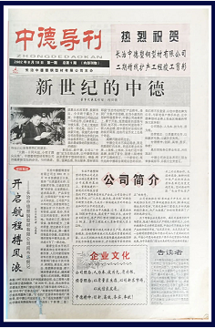 《中德导刊》是《中德广场》的前身,创办于2002年8月18日,是中德公司最早的企业内刊。《中德导刊》重点报道中德公司的发展、做人处事的励志文章以及塑钢行业的发展前景、塑钢门窗的应用及相关问题,定为每期四版:第一版,公司新闻;第二版,职工园地,第三版是启迪版,四版是家装,与企业的产品贴近,与人们的生活也息息相通。