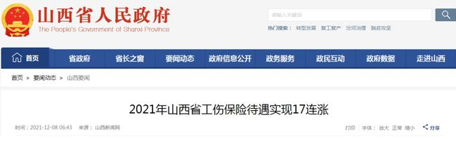 今年是山西省连续第17年提高工伤保 险待遇。