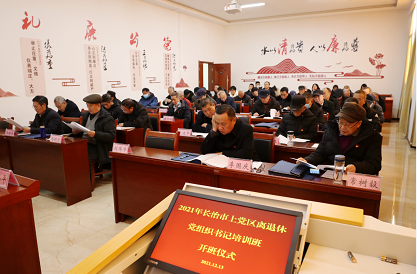 12月13日,长治市上党区2021年离退休党组织书记培训班在太行乡村振兴人才学院开班。来自区直离退休党总支部书记、离退休党支部书记,各乡镇离退休党支部书记,“银耀上党讲堂”老干部理论宣讲团成员参加培训。