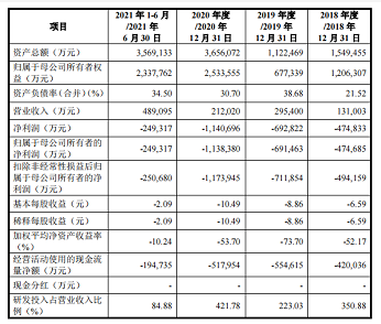 巨额研发投入以及市场推广费用,意味着百济神州还是一家尚未盈利的公司。招股书显示,百济神州在2018年、2019年、2020年及2021年前6个月营收分别为13.1亿元、29.54亿元、21.2亿元以及48.9亿元;净利润分别为-47.48亿元、-69.28亿元、-114亿元以及-24.93亿元。