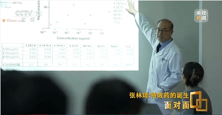 张林琦:每当有新的变异株出现,我们每次都要走合成、评估的过程,我们发现组合拳其中一个抗体是保持了活性,另外一个抗体失去了一部分活性,但由于我们是组合拳,两个抗体加在一起,仍然保持着对“奥密克戎”变异株的中和能力,所以我们对于我们抗体药物针对新出现的病毒的抑制能力,是抱有非常大信心的。