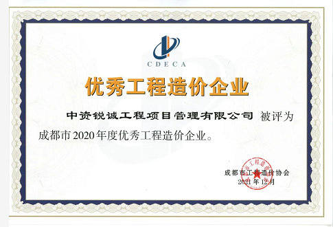中资锐诚工程项目管理有限公司被评为“成都市2020年度优秀造价企业”;