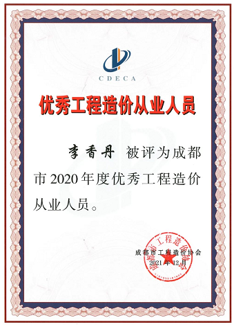 李香丹同志、张炳瑞同志获得“成都市2020年度优秀工程造价从业人员”荣誉;