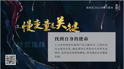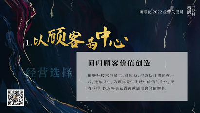 回归顾客价值创造 持续聚焦顾客价值创造,应该说是我坚持不变的原则,所以,2022年的经营策略选择,我依然以聚焦价值创造为首选。