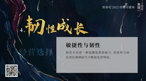 在这样一个流变的时空里,我依然坚持强调,突破认知局限,去驾驭未知与变化;通过深度学习快速迭代自我,寻找到与变化共处的解决之道;进化出克服不确定性的能力,并从不确定性中获益;拥有一种韧性成长的力量,实现穿越周期的增长。