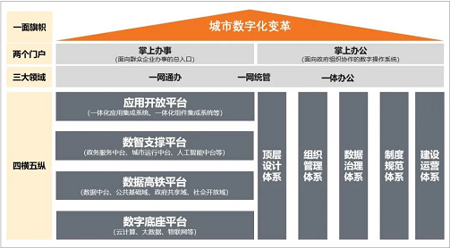 建设数字城市,真正实现城市的数字化变革,需要夯实数字基础,这可以通过以四大平台和五大体系为代表的“四横五纵”来实现。