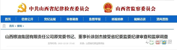 山西粮油集团有限责任公司原党委书记、董事长徐剑杰接受省纪委监委纪律审查和监察调查