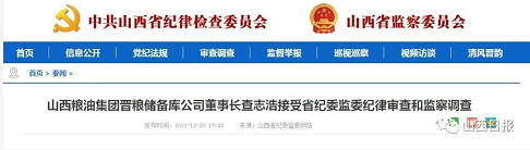 山西日报新媒体综合报道 山西粮油集团晋粮储备库公司董事长查志浩涉嫌严重违纪违法,目前正接受省纪委监委纪律审查和监察调查。