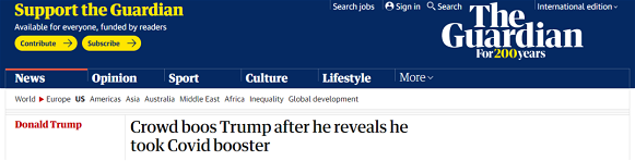据外媒报道,19日,美国前总统特朗普被问到是否打了疫苗加强针,他随口给出肯定答复,结果引来现场观众一阵嘘声。