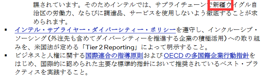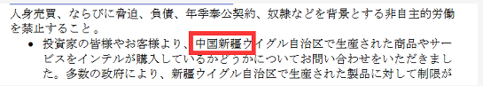 我们的投资者和客户已询问英特尔是否从中国新疆地区采购产品或服务。多个国家与地区的政府已对来自新疆地区的产品实行限制。因此,英特尔需要确保我们的供应链不使用任何来自新疆地区的劳工、采购产品或服务。
