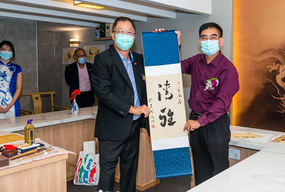 随后,贾俊波先生也把他的字画赠送给了“汾酒新加坡体验中心”。