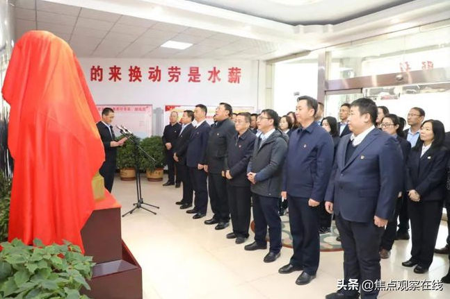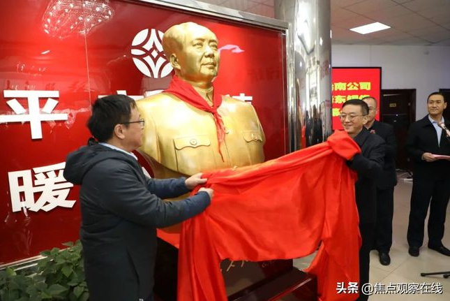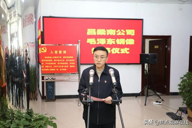 (交控集团党委组织部部长郝左军,吕梁南公司党委书记、董事长李耀峰为毛主席铜像揭幕)
