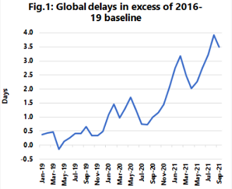 Sea-Intelligence统计了2016年~2021年船舶延误的情况,2020年上半年因为疫情原因延误情况加剧,之后有所缓和,到了2021年,延误的情况则开始了创纪录的抬升。来源:Sea-Intelligence