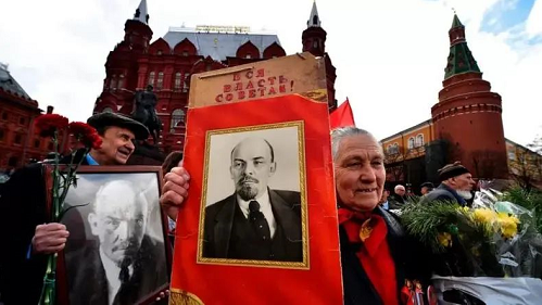 俄罗斯共产党支持者参加红场列宁陵墓花圈安放仪式纪念列宁的生日(AFP)