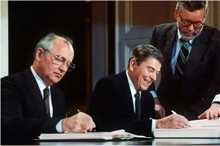 1987年戈尔巴乔夫和当时的美国总统里根签署了一项关键的核裁军条约(AFP)