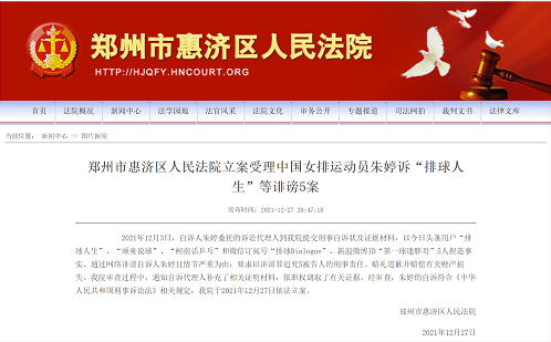 2021年12月3日,自诉人朱婷委托的诉讼代理人到我院提交刑事自诉状及证据材料,以今日头条用户“排球人生”、“顽童说球”、“柯南话乒乓”和微信订阅号“排球Dialogue”、新浪微博ID“第一球迷胖哥”5人捏造事实、通过网络诽谤自诉人朱婷且情节严重为由,要求以诽谤罪追究5被告人的刑事责任、赔礼道歉并赔偿有关财产损失。