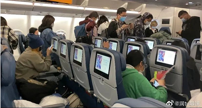 人们背着大包小包上了DL9891(原DL987),父母们抱着孩子,老人摇晃的挤进座位,年轻人们顶着熊猫眼,朋友转过头说:你瞧,没事的,好事多磨,能飞就行。