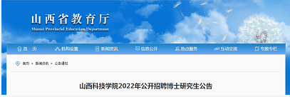 山西科技学院2022年公开招聘博士研究生50名,均为专业技术岗位。招聘岗位所需的具体条件以《山西科技学院2022年公开招聘博士研究生岗位表》(以下简称《岗位表》)的要求为准。