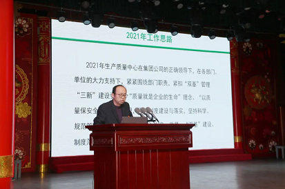 (图为生产质量部杜晓山代表生产、质量副总经理陈辉作2021年工作总结暨2022年工作部署)