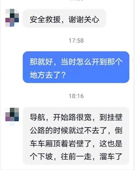 极目新闻记者联系上涉事货车司机,他表示自己是跟着导航走的,刚开始路很宽,但到挂壁公路的时候就过不去了。他见状便想倒车,但由于此处是下坡路,加上后面车厢顶着岩壁了,倒车未果反而溜车了,导致车头伸出了悬崖。