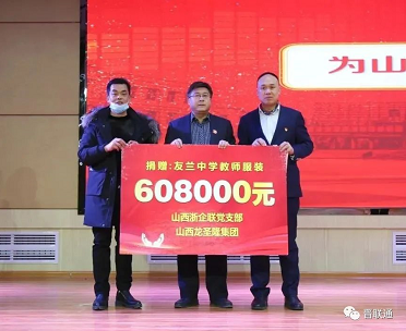 善举传承美德,爱心创造和谐。12月30日,山西省浙江企业联合会党支部书记李锡进,赴兴县友兰中学开展“尊师重教,爱心传承”捐赠活动,向兴县友兰中学全体教师捐赠价值60.8万元的300余套工作服,并与全体教师共同欢庆元旦佳节。