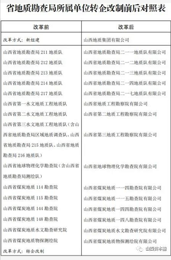 山西此轮地勘单位改革最早可追溯至2020年4月,作为全省事业单位改革重要内容的全省煤炭地质事业单位改革率先“破题”,山西省煤炭工业厅煤炭资源地质局划转省煤炭地质局,实现两大煤炭地质事业单位的合并。