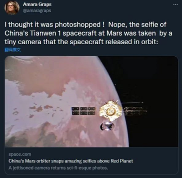 这组图一出,在国内外的航天爱好者中引起不小的轰动。常年关注中国航天的美国Space.com专栏作家安德鲁·琼斯撰写长文,称赞了天问一号的这一壮举。
