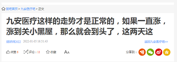 而对于九安医疗高位再度跌停,网友们观点不一。有网友表示,九安医疗这样是正常调整,避免被关小黑屋。