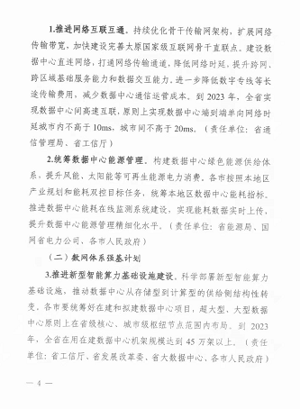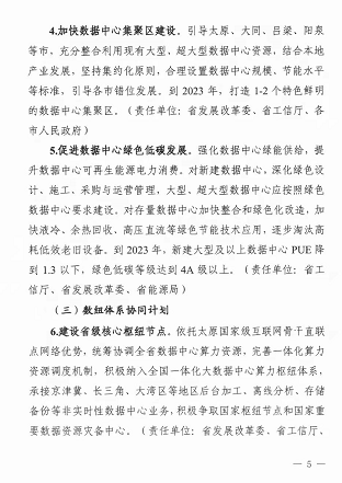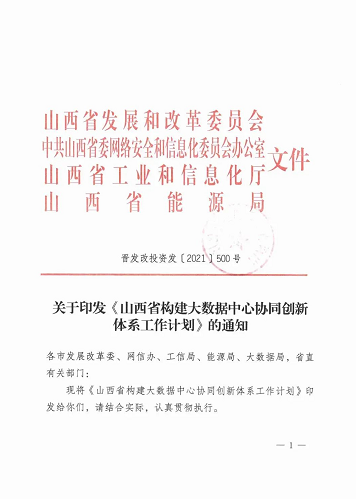 为贯彻落实《中共中央 国务院关于新时代推动中部地区高质量发展的意见》和《关于加快构建全省一体化大数据中心协同创新体系的实施意见》文件精神,加快我省数据中心绿色高质量发展,助力山西在新时代推动中部地区高质量发展中争先崛起。近日,省发展改革委、省委网信办、省工信厅、省能源局联合出台了《关于印发山西省构建大数据中心协同创新体系工作计划的通知》(以下简称《工作计划》)。