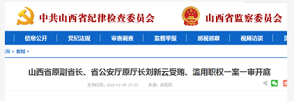 河北省廊坊市中级人民法院今天一审公开开庭审理了山西省原副省长、省公安厅原厅长刘新云受贿、滥用职权一案。