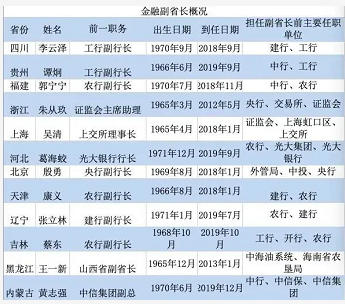 人们也注意到,具有金融业工作经验的副省长越来越多。据统计,在担任副省长之前在金融系统任职的共计15人,占比过半,是金融副省长的第一大来源。这一占比相比2017年大幅提升。