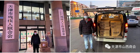 天津山西商会会员企业家、市残疾人联合会众悦基金会主任王君积极参与抗疫工作,为隔离酒店运送物资。同时,会员企业家桑保根出车出人出力帮助共同完成了物资运送任务。