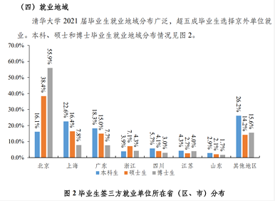 2021年清华签三方就业的毕业生中,超过半数离京就业。