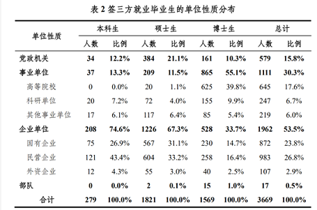 清华大学2021届签三方就业毕业生总数为3669人,其中去往党政机关、事业单位、国有企业的占比分别为15.8%、30.3%、23.8%,合计占比为69.9%。