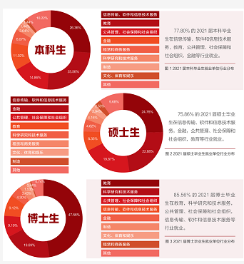 与清华大学类似,北京大学2021届毕业生也主要在信息传输、软件和信息技术服务,教育,金融,公共管理、社会保障和社会组织等行业就业。