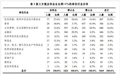 清华大学2021届毕业生签三方就业比例>1%的单位行业分布(图片来自“青塔”)
