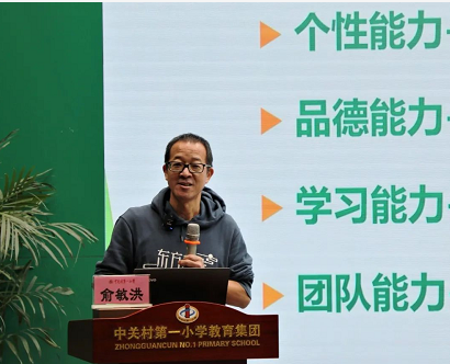 1月15日,海淀教科院与中关村学区管理中心、中关村一小联合举办了“海淀家长学校•家庭教育大讲堂” 第三讲,邀请新东方教育科技集团董事长、全国政协委员俞敏洪主讲。这次讲座的主题是“让孩子快乐成长”,海淀教科院院长吴颖惠主持了活动。