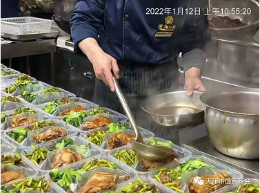 我商会会员企业渝湘江南自1月8日津南区发现首位感染者自封控起,发挥大型餐饮企业的优势,承担起为津南的抗疫一线医护人员送暖心饭菜的工作。他们注重蔬菜补充维生素、肉类补充蛋白质,注重营养配比均衡。饭菜打包、封口,保温箱进行保温,由专车配送,第一时间送往配送点。让一线医护人员吃饱吃好,为津门抗疫工作做出了贡献。