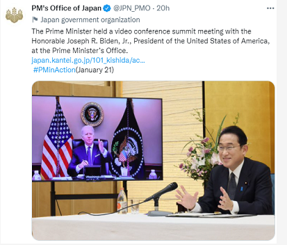 如果说2021年菅义伟内阁突然在中国台湾问题上越过红线,用日本的中国问题专家的话说,是让中日关系退到了1972年建交以前的状态,给人以始料不及的感觉,那么2022年新年伊始,1月21日的日美首脑视频会谈,将军事同盟关系推进到了经济领域,同样让日本的中国问题专家们匪夷所思。