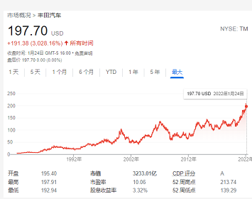 日本对美出口中,最大的贸易是汽车,最赚钱的业务也是汽车,汽车之外几乎没有其他可以赚美国便宜的产业。确实丰田在2021年将产量做到了世界第一,但丰田本身在电动车的研发上严重滞后,丰田股票的市价比成立没有多少年的特斯拉要低很多,汽车不一定能够永远帮日本在美国赚取高额利润。