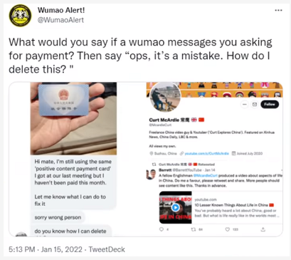 1月17日,一位居住在中国苏州的英国博主柯特·麦卡德尔(Curt McArdle)拿着一张中国社保卡假称是“好评返现卡”,在海外社交媒体上“钓”出了众多“反华”账号以及3名“中国专家”。一些“反华”账号还兴奋地声称抓住了“中国雇佣外国博主发帖宣传”的证据,有些则是直接摊牌,大家都是“拿钱办事”。对此,观察者网采访了柯特·麦卡德尔,请他谈谈对此次“钓鱼”的感想。