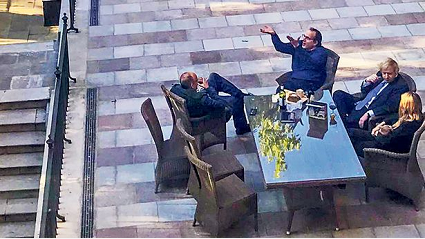 唐宁街“派对”花园内,英国首相鲍里斯正在和他的妻子以及同僚们享用“封闭式”奶酪和葡萄酒。来源:镜像