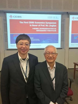 2017年5月23日,中欧举办了首届经济学研讨会暨吴敬琏教授87华诞学术庆典,钱颖一、余永定、许成钢、许小年等中国经济学界的实力派学者悉数参加。身为吴敬琏教席教授,我主动承担了这次会议的准备工作,亲自挑选了赠送给吴老师的礼物,并代表学院亲手将礼物交到了我敬爱的吴敬琏老师手里。在交接礼物时我心潮澎湃,感觉吴老师在接过礼物的同时也将他在中欧所开创的事业交棒给了我们这一辈。