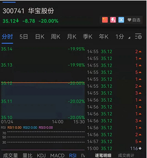 买了A股华宝股份的投资者好不到哪儿去,截至24日收盘,该股报35.12元,跌幅20%,最新市值216.3亿元。