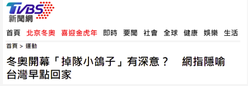 台湾TVBS新闻网:冬奥开幕“掉队小鸽子”有深意?网指隐喻台湾早点回家↓